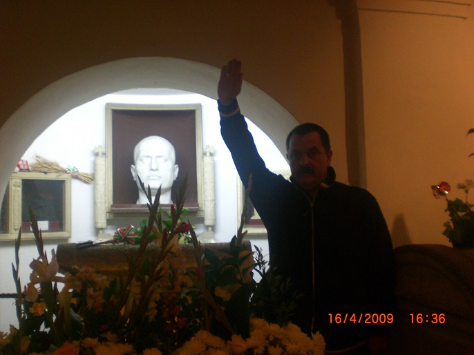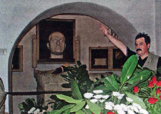 Ο υποφυρερίσκος της «Χρυσής Αυγής», ο Χρήστος Παππάς, σε μια από τις πολλές επισκέψεις του στον τάφο του Μουσολίνι στο χωριό Πρεντάπιο της Ιταλίας. Ο «πατριώτης» αποδίδει φόρο τιμής στο ίνδαλμά του: Τον Μουσολίνι! Ο Παππάς, ευλαβικός προσκυνητής στον τάφο του φασίστα, του δικτάτορα που επιτέθηκε στην Ελλάδα στις 28 Οκτωβρίου 1940…