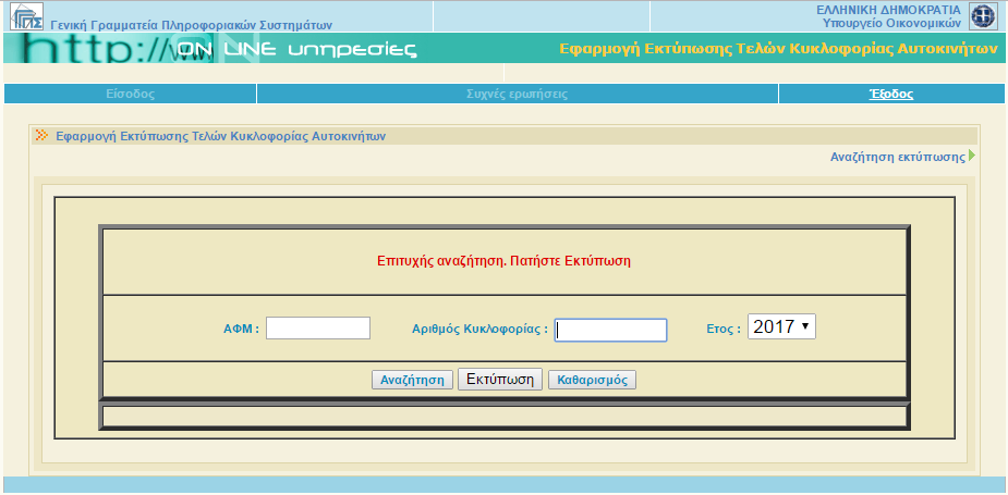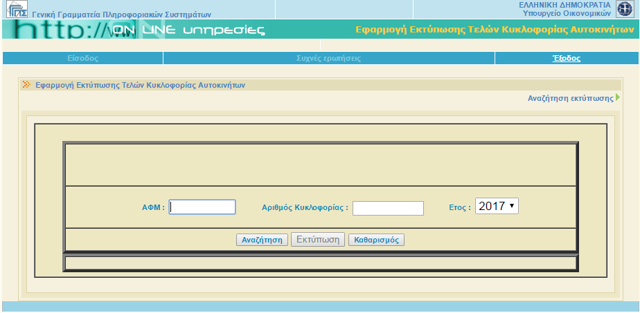 Τα τέλη κυκλοφορίας του 2018 αναρτήθηκαν στην ιστοσελίδα της Γενικής Γραμματείας Πληροφοριακών Συστημάτων του υπουργείου Οικονομικών.