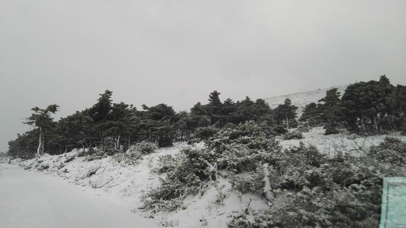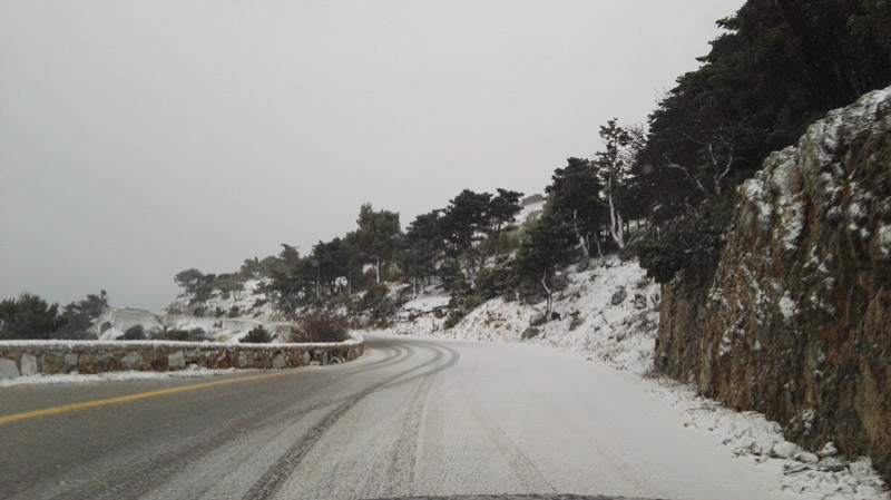 Αντίθετα, στα ορεινά τα βουνά άσπρισαν χωρίς όμως να έχουν δημιουργηθεί προβλήματα.