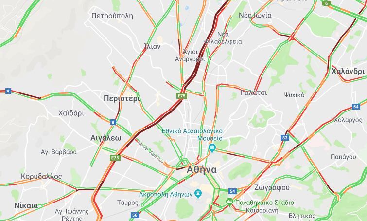 Στις 8 το πρωί, πολύ δύσκολη ήταν η κατάσταση στην άνοδο του Κηφισού, από την Πέτρου Ράλλη έως την Νέα Φιλαδέλφεια, αλλά και στην κάθοδο, από την Μεταμόρφωση μέχρι το κέντρο.