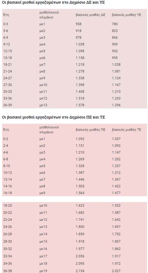 Οι βασικοί μισθοί εργαζομένων στο Δημόσιο ΔΕ και ΥΕ
