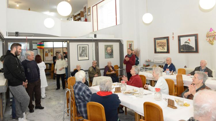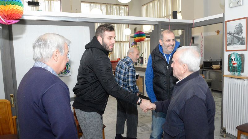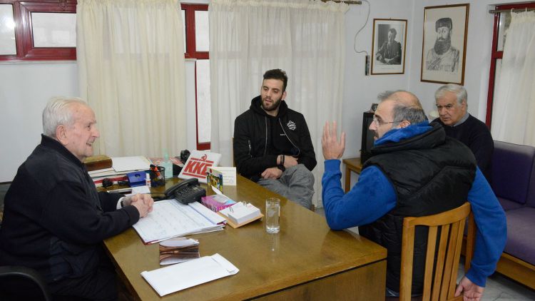 Σε ιδιαίτερη συνάντηση που ακολούθησε, ο πρόεδρος του «Σπιτιού του Αγωνιστή» ανέλυσε στον διεθνή μπασκετμπολίστα την ιστορία του Ιδρύματος που φιλοξενεί ηλικιωμένους αγωνιστές της Εθνικής Αντίστασης. Πρόκειται για ένα κοινωφελές ίδρυμα, που στόχο έχει την παροχή βοήθειας (ηθικής, πνευματικής και υλικής), συμπαράστασης και περίθαλψης σε ηλικιωμένους αγωνιστές της Εθνικής Αντίστασης και του αντιφασιστικού - δημοκρατικού αγώνα του λαού μας. Αγωνιστές που πολέμησαν και τσάκισαν τον φασισμό και τον ναζισμό στη χώρα μας. Επισήμανε ότι το «Σπίτι του Αγωνιστή» λειτουργεί χάρη στις προσφορές των εργαζομένων, του λαού αλλά και τη στήριξη του ΚΚΕ.