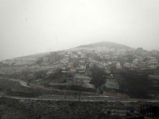 Στα ορεινά της Λάρισας σημειώνονται χιονοπτώσεις, με ένα λευκό πέπλο να καλύπτει α ορεινά του νομού.
