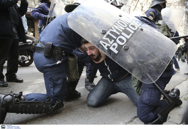 Η ένταση προκλήθηκε όταν τα ΜΑΤ ξεκίνησαν την περικύκλωση ομάδας διαδηλωτών σε συμβολαιογραφικό γραφείο στη Θεμιστοκλέους, με τους διαδηλωτές να ανταπαντούν με την απώθηση των ΜΑΤ και αυγά.