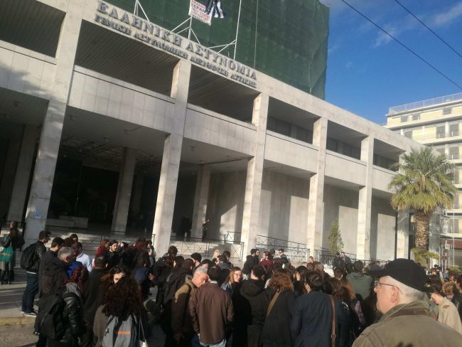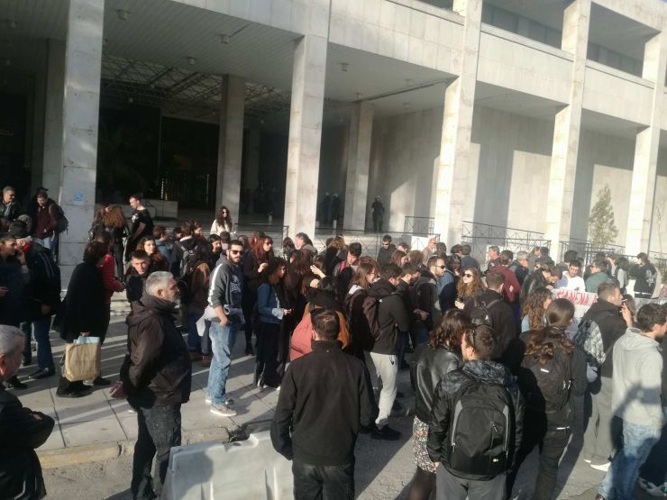 Φωτογραφίες από τη συγκέντρωση συμπαράστασης, ενώ κλειστό παραμένει το ρεύμα της Αλεξάνδρας προς την Πατησίων: