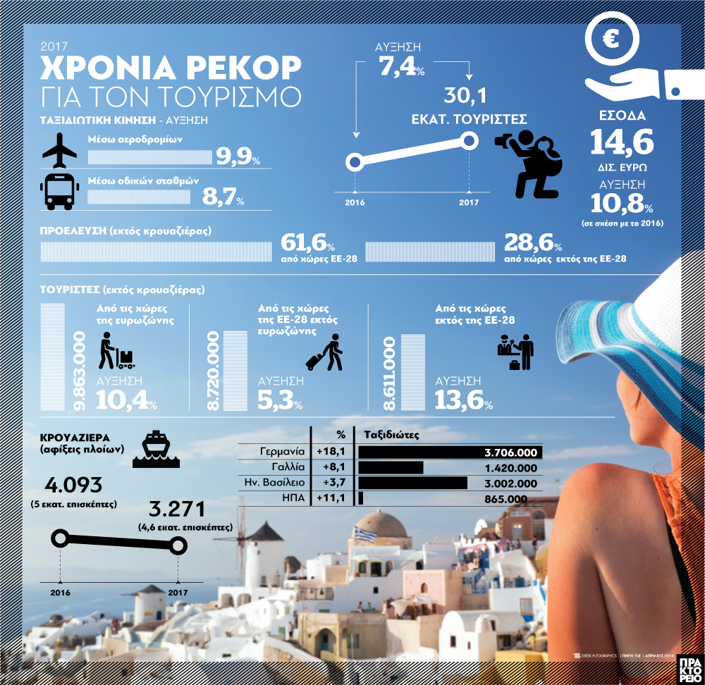 Τα έσοδα από το νέο κύμα του τουρισμού θα ανέλθουν στα 14,6 δισεκατομμύρια ευρώ, ήτοι θα έχουμε αύξηση 10,8% σε σχέση με το 2016.