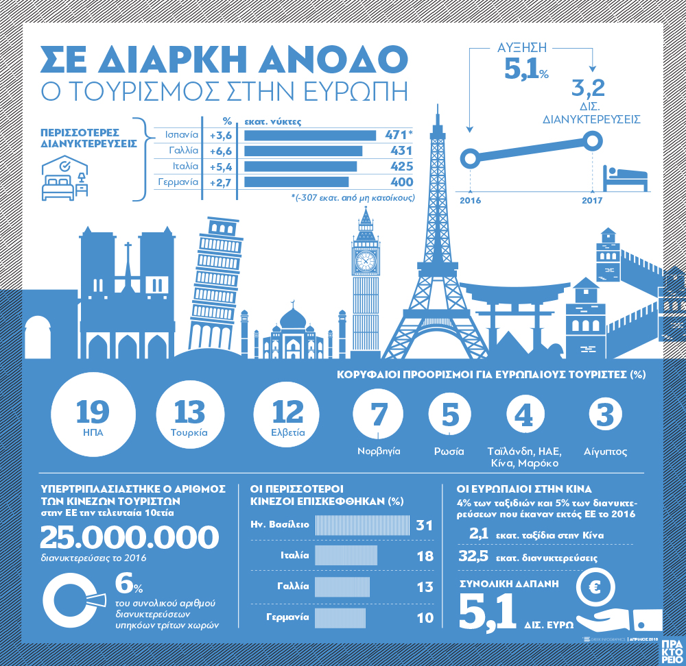 Το γράφημα αποτυπώνει στοιχεία για τον αριθμό των διανυκτερεύσεων σε τουριστικά καταλύματα στην Ευρωπαϊκή Ένωση το 2017 / AΠΕ - ΜΠΕ / Δημοσιογραφική επιμέλεια: Βασ. Κοριμέντζας