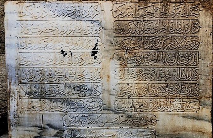 Η επιγραφή περιλαμβάνει ευχαριστίες προς τον Δεφτεδάρ Πασά, ο οποίος επιμελήθηκε την αναστήλωση του τότε τζαμιού, μετά την καταστροφή του από σεισμό.