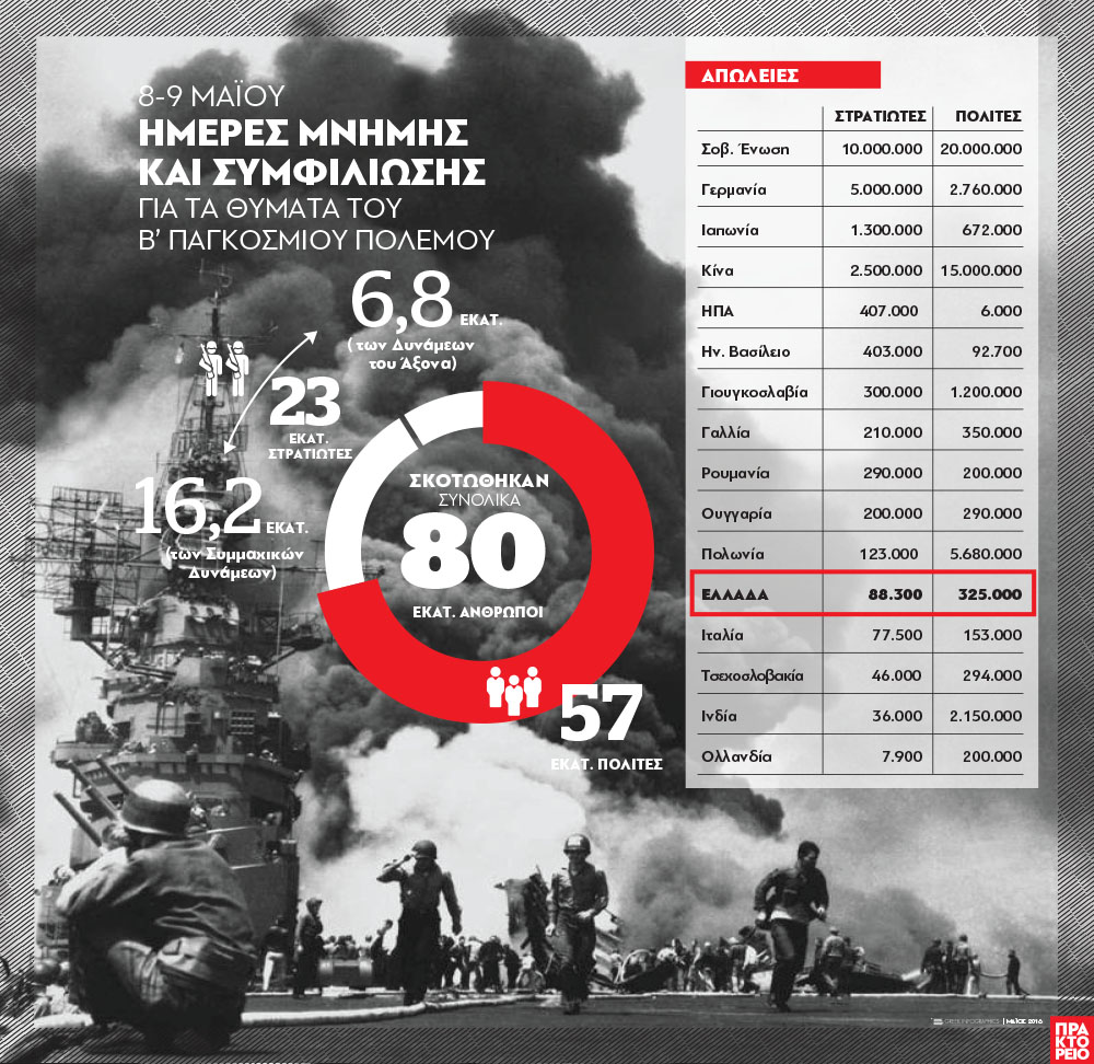 Το γράφημα αποτυπώνει στοιχεία σχετικά με τις απώλειες πολιτών και στρατιωτών κατά τη διάρκεια του Β΄ Παγκοσμίου Πολέμου / ΑΠΕ - ΜΠΕ / Δημοσιογραφική επιμέλεια: Δημ. Φραγκουλιώτης