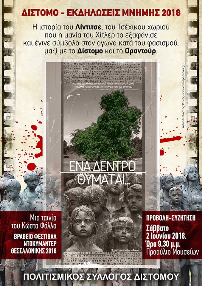 Στον ιδιαίτερα φορτισμένο χώρο του μαρτυρικού Διστόμου, λοιπόν, κάνει πρεμιέρα το Σάββατο 2 Ιουνίου, για πρώτη φορά εκτός φεστιβάλ, η βραβευμένη ταινία "Ενα Δένδρο Θυμάται..." που αφορά την ιστορία της εξαφάνισης από τους Ναζί, του Λίντιτσε.