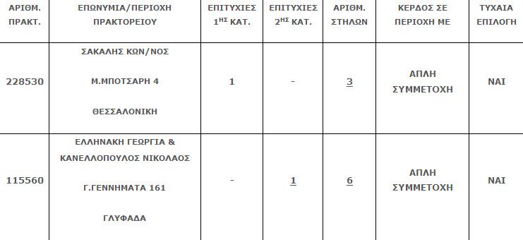 Στη δεύτερη κατηγορία (5άρια) βρέθηκε ένα τυχερό δελτίο που κερδίζει το ποσό των 79.748,17 ευρώ.