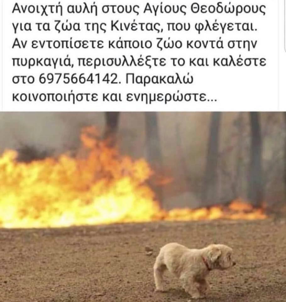 Εκτός από τις ανθρώπινες ζωές που πρέπει να σωθούν, τις περιουσίες και τα δάση, θα πρέπει να έχουμε το νου μας και στα ζώα που είναι απροστάτευτα και φοβισμένα από την κατάσταση.