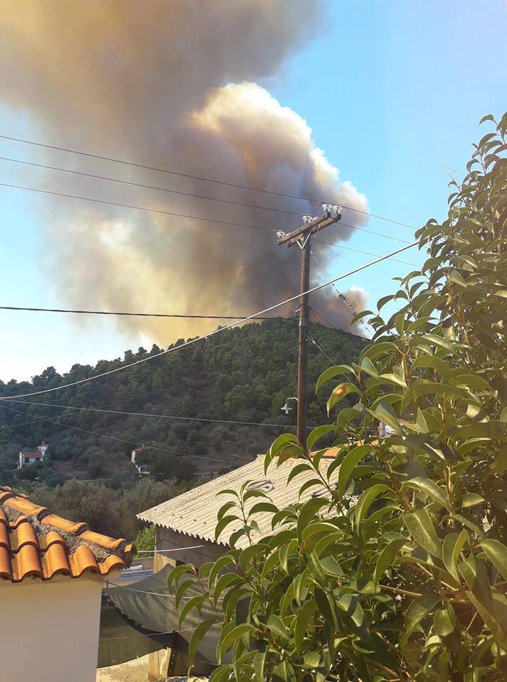 Η πυρκαγιά καίει πυκνό πευκοδάσος και κατευθύνεται προς τα χωριά Κοντοδεσπότη και Σταυρός, τα οποία δόθηκε εντολή πριν από λίγο να εκκενωθούν προληπτικά. Νωρίτερα είχε γίνει γνωστό ότι εκκενώθηκε προληπτικά μόνο ένας οικισμός, όμως οι αρχές προχώρησαν σε απομάκρυση των κατοίκων και από τον δεύτερο.