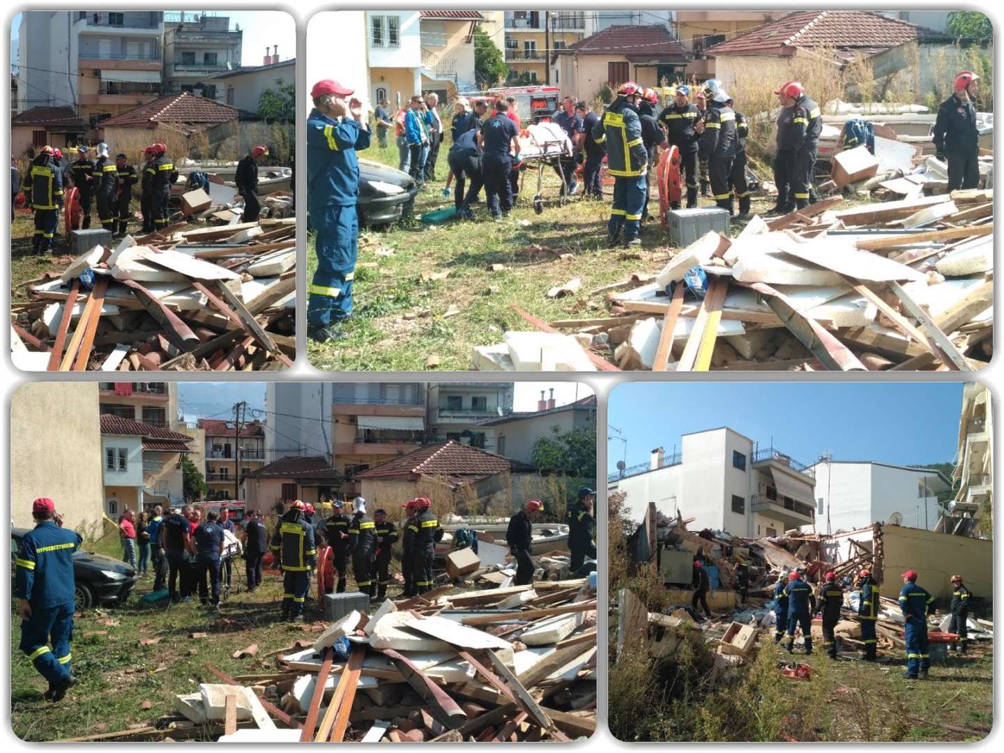 Μετά τον απεγκλωβισμό, με ένα ειδικά εκπαιδευμένο σκύλο της ΕΜΑΚ, οι πυροσβέστες κάνουν έρευνα στα ερείπια, εξετάζοντας το ενδεχόμενο να υπάρχει και άλλος εγκλωβισμένος, καθώς η συγγενείς και οι γείτονες βρίσκονται σε σοκ και δεν μπορούν να δώσουν ακριβείς πληροφορίες.