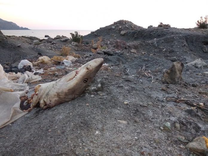 Από πλαστικά μπουκάλια, σκουπίδια μέχρι και ένα κεφάλι καρχαρία να σαπίζει σε κοινή θέα, το μόνο σίγουρο είναι πως το θέαμα είναι σιχαμερό, πόσο μάλλον όταν αυτός ο σκουπιδότοπος βρίσκεται μόλις λίγα μέτρα μακριά από την παραλία.