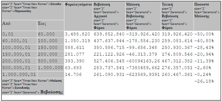 Αντίστοιχος αριθμός πολιτών με μικρή περιουσία θα δει μείωση του ΕΝΦΙΑ έως 50%.