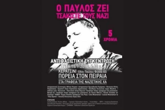 Στις 18 Σεπτεμβρίου η οικογένεια και οι φίλοι του Παύλου θα στηρίξουν την κεντρική αντιφασιστική πορεία που θα ξεκινήσει από το μνημείο του Παύλου στο Κερατσίνι αλλά φέτος θα κατευθυνθεί προς τα γραφεία των δολοφόνων στον Πειραιά.