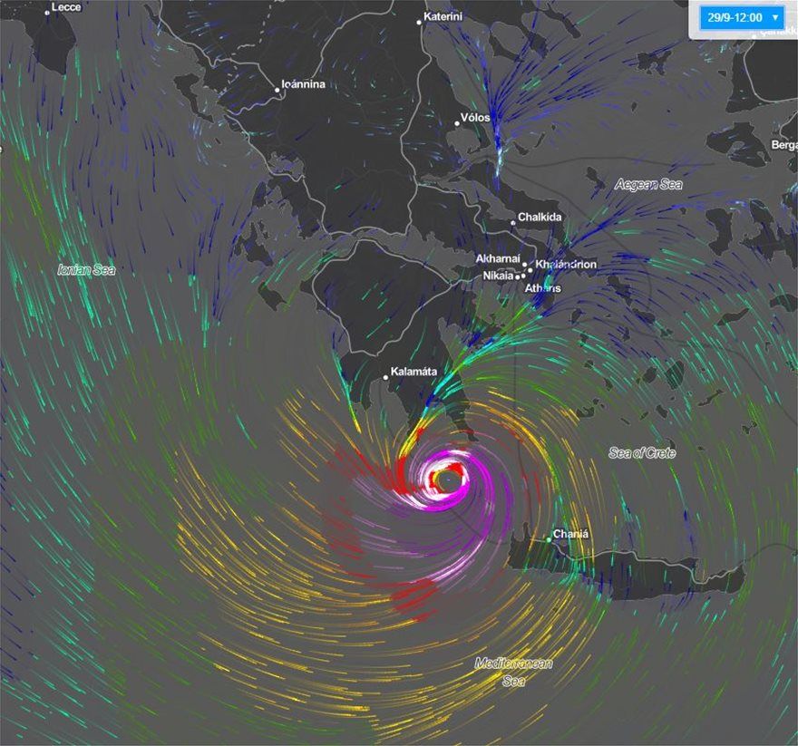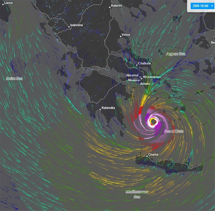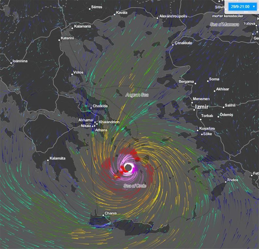 Όπως φαίνεται και στα γραφήματα, η κίνηση του κυκλώνα αναμένεται να ακολουθήσει ανατολική πορεία, επηρεάζοντας με ισχυρές βροχές και πολύ θυελλώδεις ανέμους μεγάλο τμήμα της Πελοποννήσου και της Κρήτης το πρωινό του Σαββάτου 29/09, στη συνέχεια την Αττική, Εύβοια και Κυκλάδες και μέχρι το πρωί της Κυριακής 30/09 τα νησιά του Ανατολικού Αιγαίου και πιθανόν τα Δωδεκάνησα.
