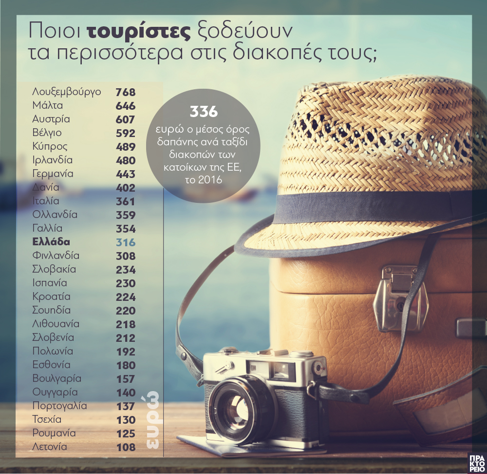 Οι κάτοικοι του Λουξεμβούργου έκαναν τις πιο πολυδάπανες διακοπές (περίπου 768 ευρώ) το 2016, ακολουθούμενοι από κατοίκους της Μάλτας (περίπου 646 ευρώ) και Αυστρίας (περίπου 607 ευρώ). Κατά μέσο όρο στην ΕΕ, οι κάτοικοι δαπάνησαν περίπου 336 ευρώ ανά ταξίδι διακοπών το 2016.