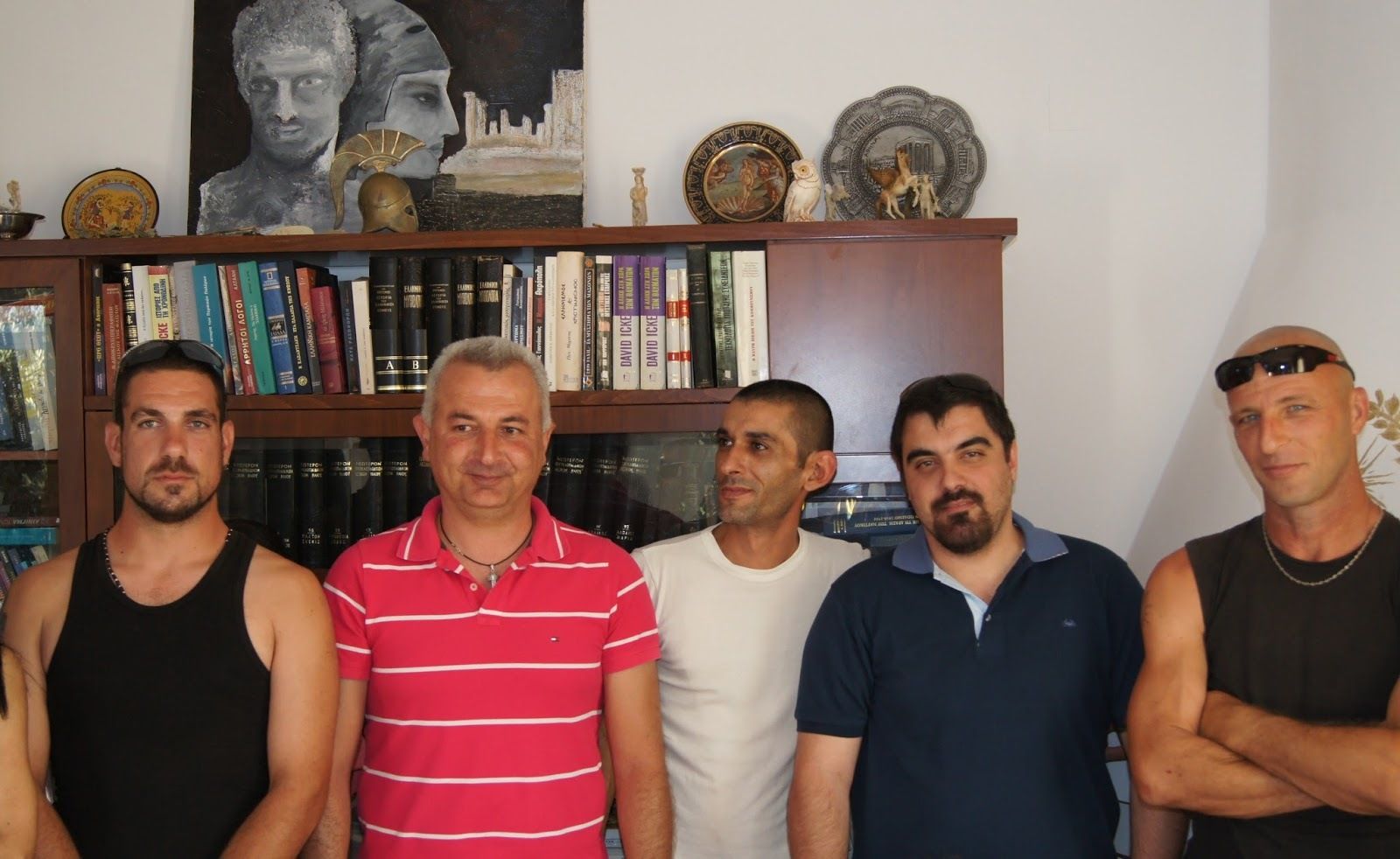Ο Βασίλης Κεχαγιάς τελευταίος δεξιά, δίπλα από τον Αρτέμη Ματθαιόπουλο. Φωτογραφία από το site της τοπικής οργάνωσης της Χρυσής Αυγής στη Λέσβο, το 2013.