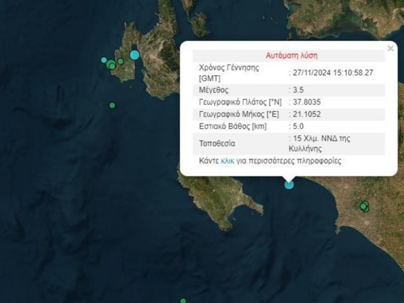 Σεισμός σημειώθηκε στην Κυλλήνη νωρίς το απόγευμα της Τετάρτης.