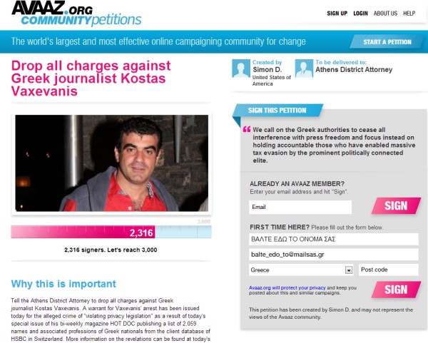 Πατήστε ΕΔΩ για να μπείτε στη σελίδα και να δηλώσετε να αρθεί η δίωξη του Βαξεβάνη