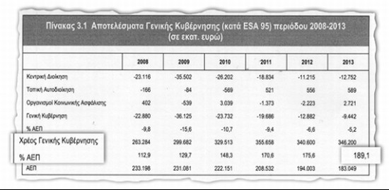 Το 2013 με το ΑΕΠ να προϋπολογίζεται στα 183 δισ. ευρώ, το Χρέος της Γενικής Κυβέρνησης υπολογίζεται να εκτιναχθεί στο αστρονομικό 189,1% του ΑΕΠ της χώρας!