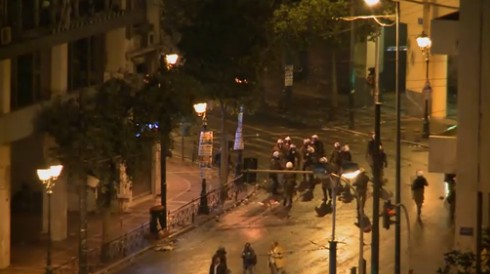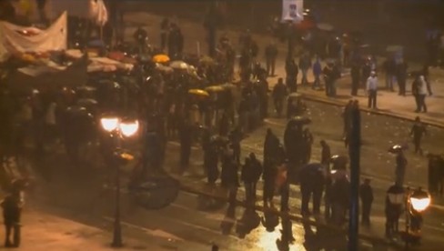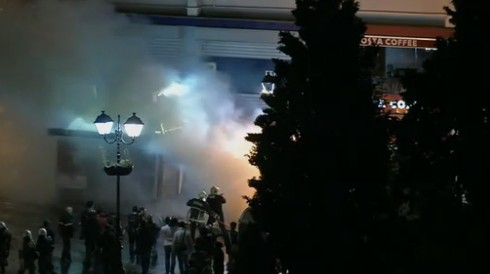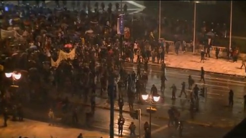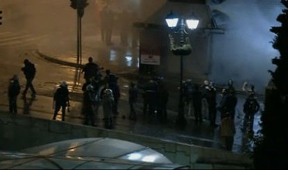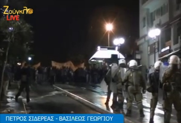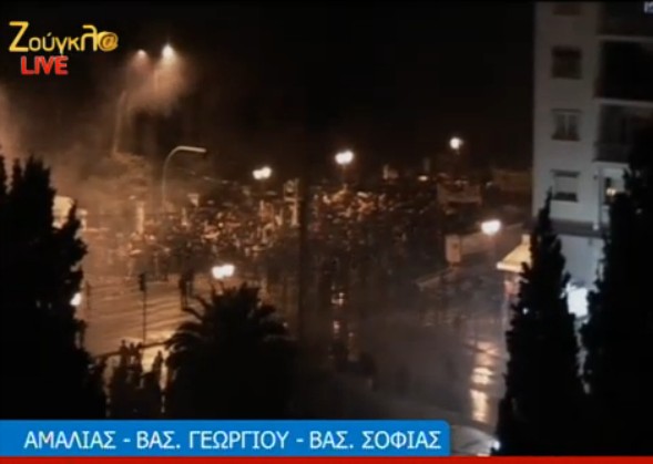 Επίθεση από την Οθωνος προς τους διαδηλωτές και τους ωθούν προς τους στύλους του Ολυμπίου Διός. Μεγάλο κομμάτι του κόσμου που διαδήλωνε έχει αποχωρήσει γιατί η περιοχή στην κυριολεξία μυρίζει μπαρούτι. Η κατάσταση είναι αποπνικτική.