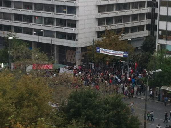 Το ΠΑΜΕ υποχώρησε προς τη Φιλελλήνων και οι άλλοι διαδηλωτές υποχώρησαν από την Αμαλίας. ΜΑΤ βρίσκονται παντού.