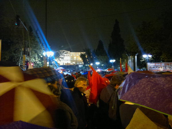 6.40 Οι διαδηλωτές παραμένουν στην πλατεία Συντάγματος παρά τη βροχή