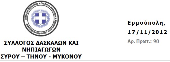 ΣΥΛΛΟΓΟΣ ΕΚΠΑΙΔΕΥΤΙΚΩΝ Ελευσίνα 16/11/2012
