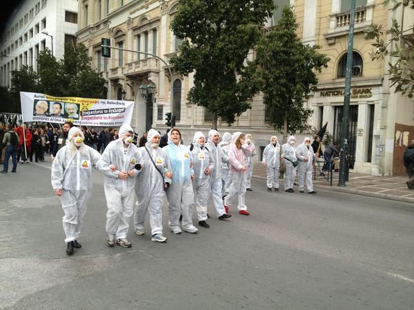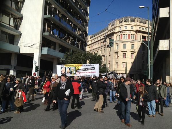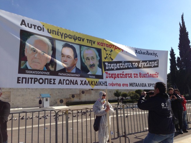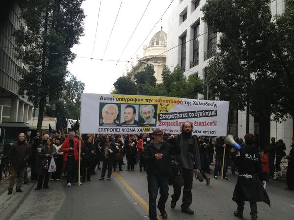Εκατοντάδες κάτοικοι της Χαλκιδικής κατέβηκαν το κέντρο της Αθήνας για να διαδηλώσουν κατά των μεταλλείων χρυσού που θα καταστρέψουν για τις επόμενες γενιές την περιοχή τους. Οι διαδηλωτές έκαναν πορεία στο κέντρο της Αθήνας και κατέληξαν έξω από τη Βουλή. Υπολογίζεται ότι η πορεία είχε 1.500 άτομα.