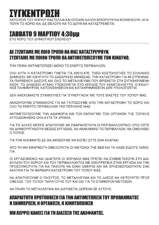 Συγκέντρωση κατοίκων 9/3 στα Καστέλλια Φωκίδας για το θέμα που έχει προκύψει σχετικά με τα Μεταλλεία στη Γκιώνα