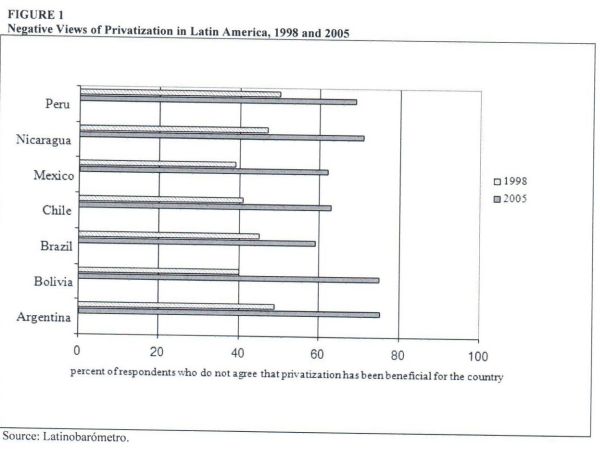 H εικονα αυτή δείχνει το βαθμό δυσαρέσκειας των κατοίκων της Λατινικής Αμερικής από τις ιδιωτικοποιήσεις, το 1998 και 7 χρόνια μετά, το 2005.