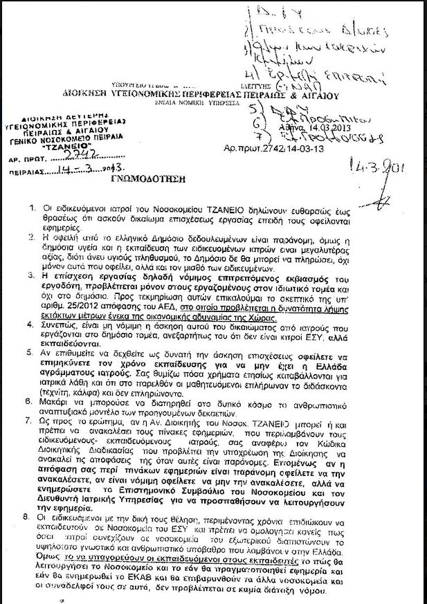 Τα ΑΙΣΧΡΑ και ΑΠΑΡΑΔΕΚΤΑ υποκείμενα που λέγονται ΔΙΟΙΚΗΤΗΣ και ΝΟΜΙΚΟΣ ΣΥΜΒΟΥΛΟΣ της 2ης ΥΠΕ, ο «νομικός σύμβουλος» Σημαντήρης και ο διοικητής Ευδοκιμίδης, στην προσπάθειά τους ΝΑ ΤΡΟΜΟΚΡΑΤΗΣΟΥΝ τους ειδικευόμενους του ΤΖΑΝΕΙΟΥ που ξεκίνησαν σήμερα επίσχεση, ΣΥΝΕΤΑΞΑΝ και ΚΥΚΛΟΦΟΡΗΣΑΝ ΕΝΑ ΑΙΣΧΡΟ ΚΕΙΜΕΝΟ που το τιτλοφορούν «Γνωμοδότηση», το οποίο ο ένας (Σημαντήρης) το υπογράφει, και ο άλλος (Ευδοκιμίδης) δήλωσε ΜΕ ΚΑΜΑΡΙ στον εκπρόσωπο της ΕΙΝΑΠ που επικοινώνησε τηλεφωνικά μαζί του πως το «υιοθετεί πλήρως» …