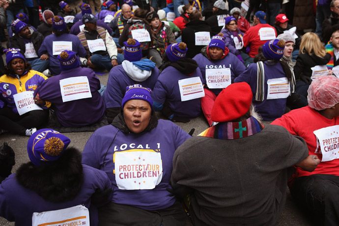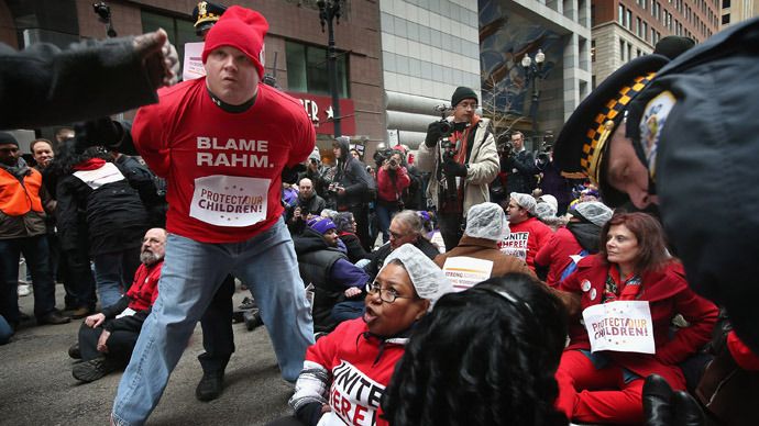 Πάνω 130 συλλήψεις έκανε η αστυνομία του Σικάγο χθες κατά τη διάρκεια μεγάλης διαδήλωσης δασκάλων και καθηγητών, που εναντιώνονται στο κλείσιμο 54 δημόσιων σχολείων. Ο δήμαρχος του Σικάγο Rahm Emanuel αρνήθηκε περαιτέρω διαπραγματεύσεις με τους καθηγητές καθώς φαίνεται είναι ήδη προαποφασισμένο το λουκέτο.