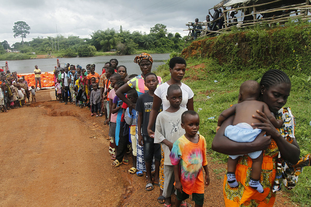 Πρόσφυγες επιστρέφουν στην Ακτή του Ελεφαντοστού και περιμένουν στην ουρά να τους επιτραπεί η είσοδός τους στη χώρα τους καθώς έρχονται από τη Λιβερία, 20 Μαϊου 2016, Luc Gnago / Reuters