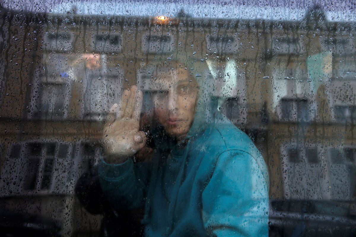 Αφγανός έφηβος χαιρετά καθώς βρίσκεται μέσα στο λεωφορείο και αναχωρεί από τον πρόχειρο καταυλισμό της Γαλλίας και πηγαίνει στη Βρετανία, 18 Οκτωβρίου 2016, Pascal Rossignol /Reuters