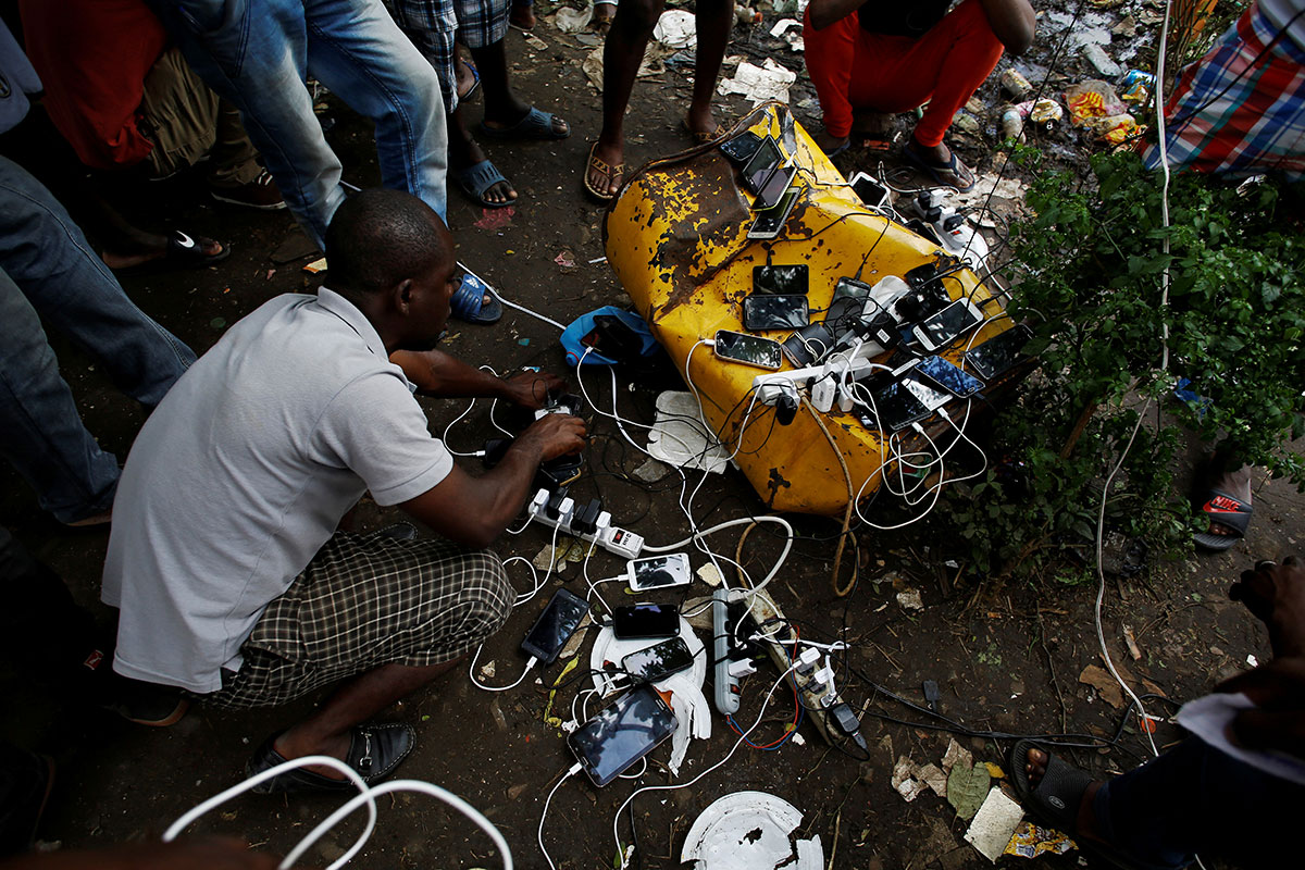 Αφρικανοί πρόσφυγεςέφτασαν στην Κόστα Ρίκα και φορτίζουν τα κινητά τους σε ένα πρόχειρο καταυλισμό στα σύνορα μεταξύ Κόστα Ρίκα και Νικαράγουα στην Penas Blancas, Κόστα Ρίκα, 15 Ιουλίου 2016, Juan Carlos Ulate / Reuters