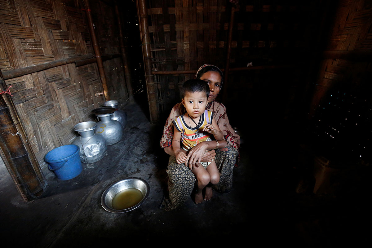Μία μουσουλμάνα γυναίκα φωτογραφίζεται μαζί με το γιο της στον καταυλισμό προσφύγων στο Μπαγκλαντές, 22 Νοεμβρίου 2016, Mohammad Ponir Hossain / Reuters