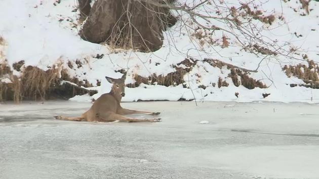 Λίγε ημέρες νωρίτερα, στο Κοννέκτικατ των ΗΠΑ, ένα ελάφι έσπασε με το βάρος του την παγωμένη επιφάνεια του ποταμού και σώθηκε από μέλος φιλοζωϊκής οργάνωσης.