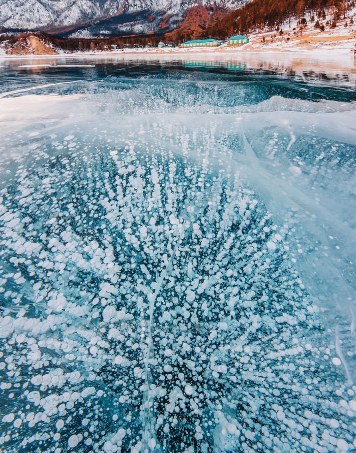 Τον χειμώνα η λίμνη παγώνει με το στρώμα πάγου να φτάνει μέχρι και 2 μέτρα χαρίζοντας μοναδικές εικόνες φυσικού κάλους, όπως οι παρακάτω που δημοσιεύει το boredpanda.com: