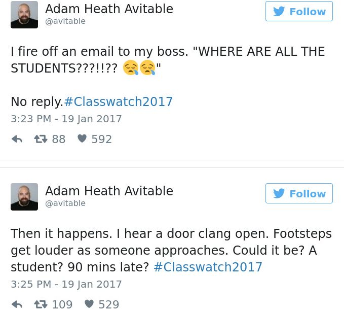 Ο ίδιος εξιστόρησε την... "περιπέτειά" του στο Twitter, δημιουργώντας μάλιστα και το hashtag "#Classwatch2017".