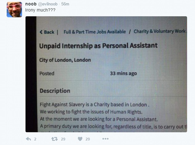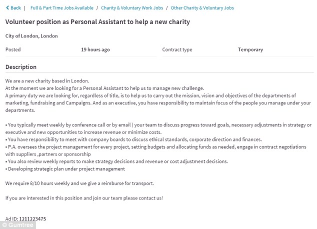 Πέρα από τον... αγώνα της, η ΜΚΟ ψάχνει και προσωπικό για εθελοντική απλήρωτη εργασία, "ανεβάζοντας" στο Διαδίκτυο και τις αντίστοιχες αγγελίες.