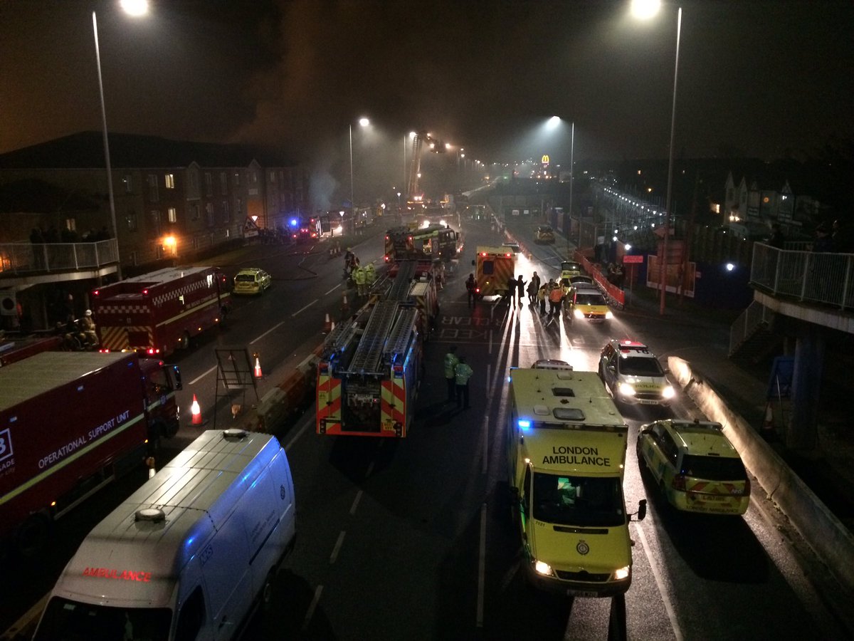 Βρετανικά ΜΜΕ κάνουν λόγο για πέντε τραυματίες και σχεδόν 60 πυροσβέστες που βρίσκονται στο σημείο και δίνουν μάχη με τις φλόγες στο ισόγειο τριώροφου κτιρίου.