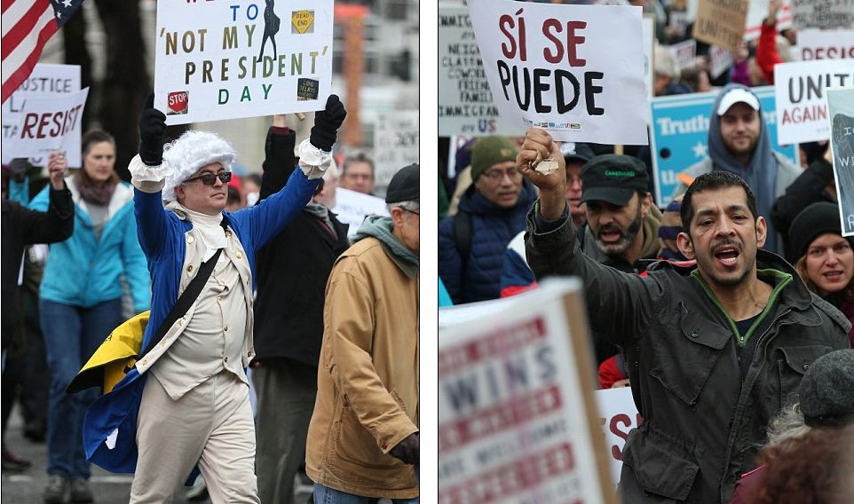 Η διαδήλωση διοργανώθηκε έξω από ένα Ομοσπονδιακό Κτίριο από το κίνημα «not my Presidents' Day».