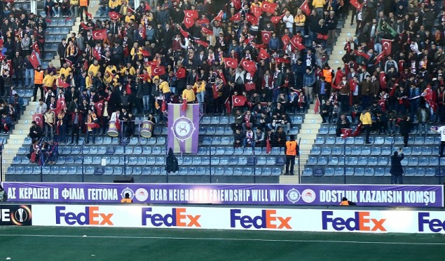 Πανό για την Ελλάδα και τον Ολυμπιακό ύψωσαν οι οπαδοί της Οσμάνλισπορ στην Άγκυρα.