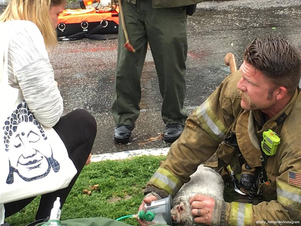 Σύντομα κατέφθασε η Πυροσβεστική, που επιχείρησε άμεσα και έβγαλε το σκυλάκι από την φωτιά, χωρίς όμως εκείνο να έχει τις αισθήσεις του. Ο 10χρονος Ναλού χρωστάει την ζωή του στον Αντριου Κλέιν που αψήφησε τους κινδύνους και όχι μόνο ρίχτηκε στην φωτιά, αλλά βρήκε το σκυλάκι και το έβγαλε έξω. Στην συνέχεια, προσπαθούσε επί 20 λεπτά να επαναφέρει στην ζωή το ζωάκι, κάνοντάς του τεχνητή αναπνοή με την βοήθεια συναδέλφων του.