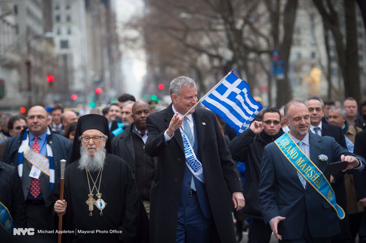 Ο δήμαρχος Νέας Υόρκης κ. Μπιλ ντε Μπλάσιο ευχήθηκε «χρόνια πολλά» και τόνισε ότι αν και είναι ο ίδιος Ιταλοαμερικανός, «η πιο μεγαλειώδης και ενθουσιώδης παρέλαση είναι η παρέλαση της Ομογένειας» και ότι «μας δίνει τη δυνατότητα να θυμηθούμε τι έχει κάνει η Ελλάδα για την Αμερική».