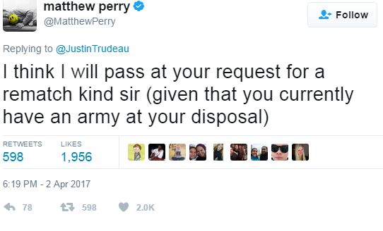 Με τον Πέρι, με τη σειρά του, να μην σηκώνει το γάντι γιατί ο Τριντό έχει "ένα στρατό στη διάθεση του"!